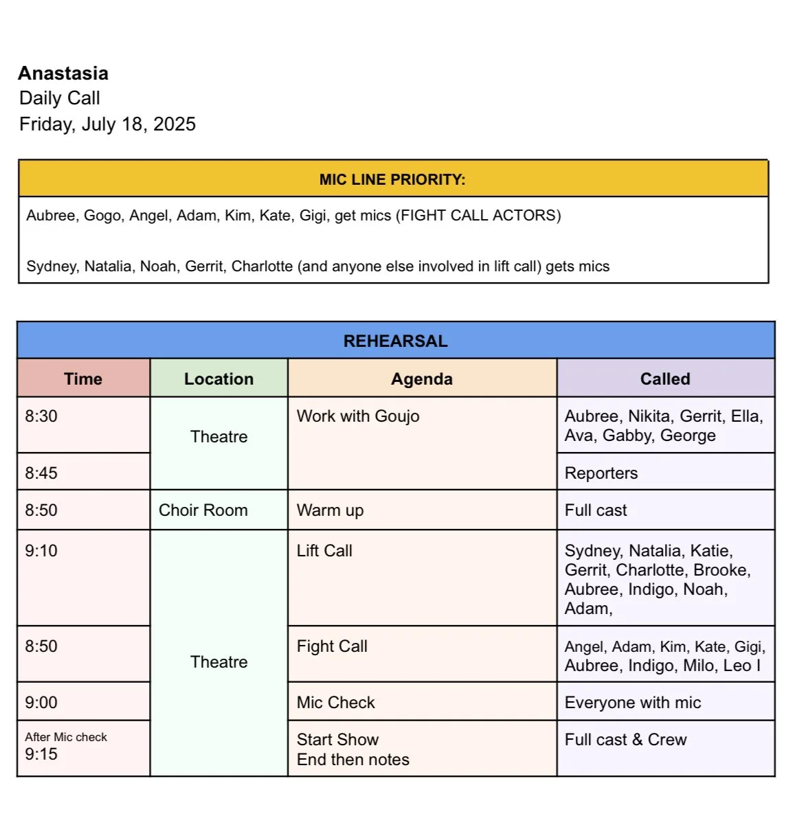 Anastasia Director: Laura SchmidtStage Manager: Althea ForstnerJefferson Theatre Company, July 2025 Paperwork and Images